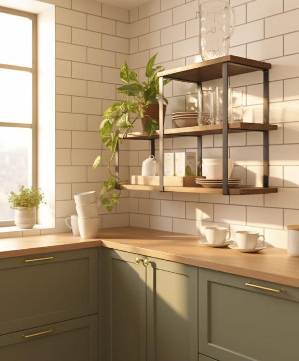 Repisa TRIPLE de dos ménsulas y tres estantes.